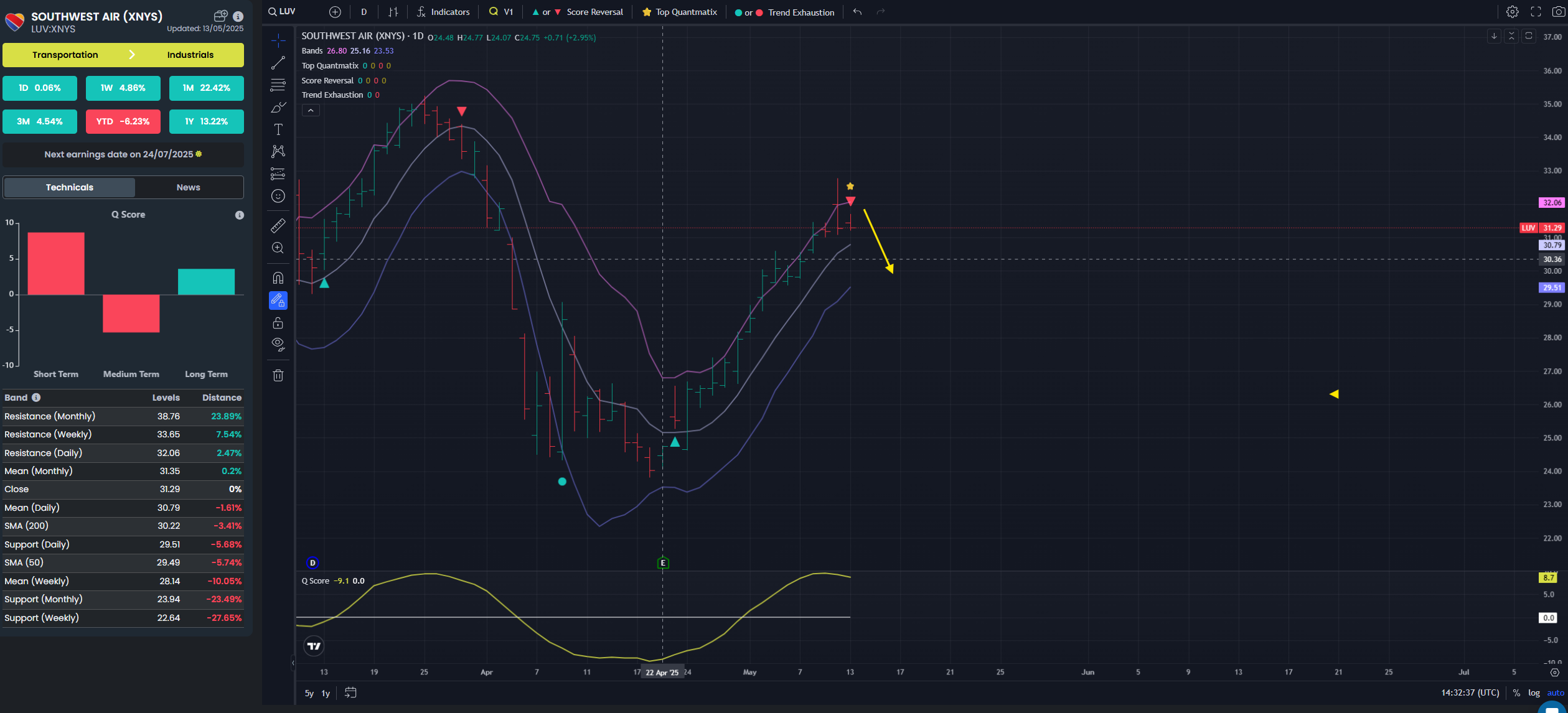 Short LUV 0.00%↑ for a short term pullback after an incredible run