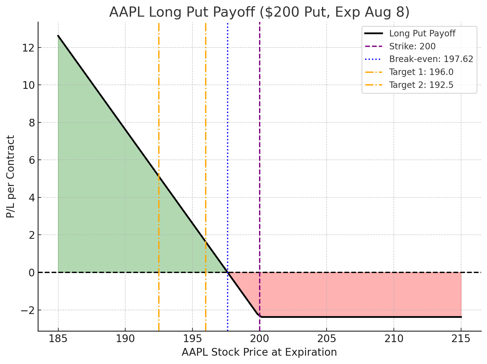 Reward Potential: High — profit increases as AAPL trades lower, breakeven at $197.62