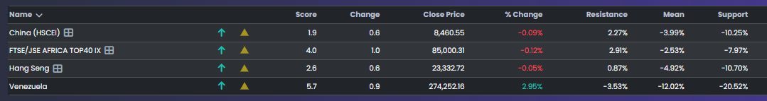 Momentum continues to strengthen in the medium-term outlook, particularly across European Country Indices and China-focused ETFs, as flagged by QMโs signal scans.