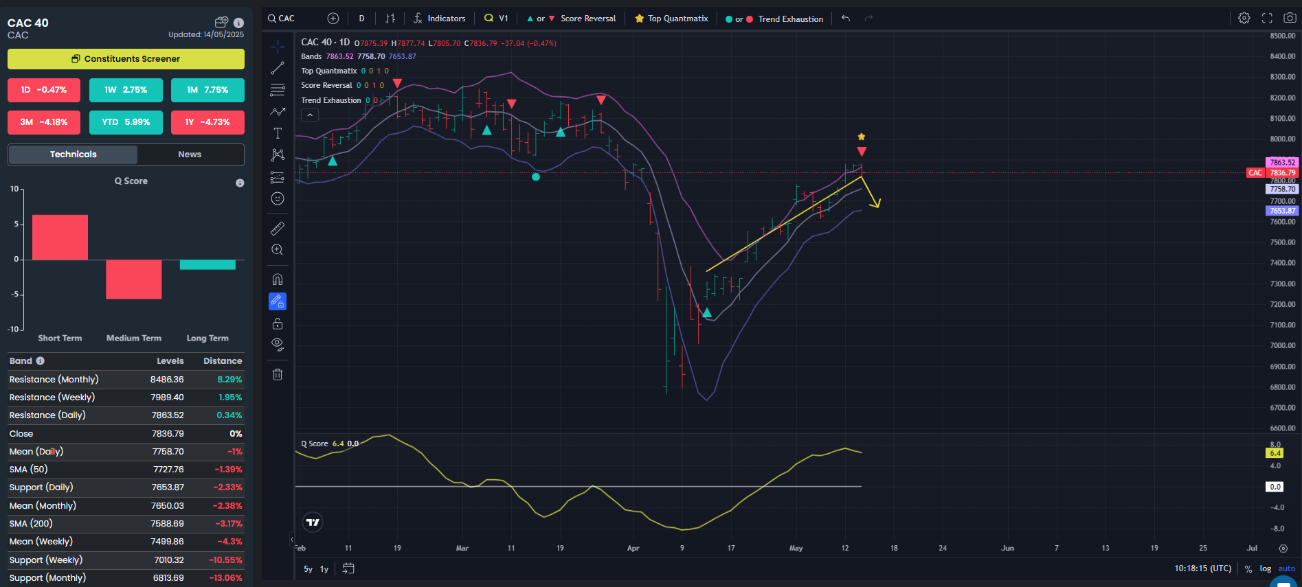 We’ve just triggered a high conviction short-term negative signal in the CAC 40, suggesting caution is warranted after a strong run.