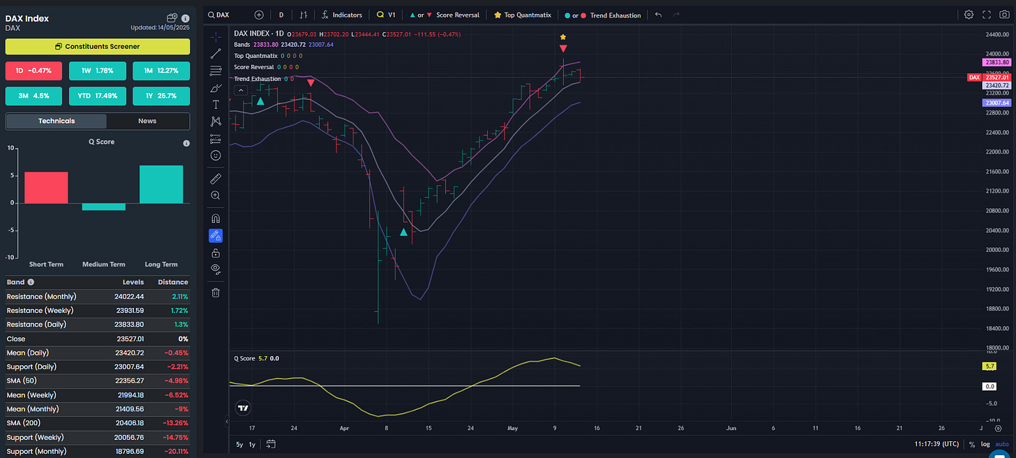 After a solid sprint higher, European equity markets are starting to hit the brakes β and our Quantmatix signals are firing.