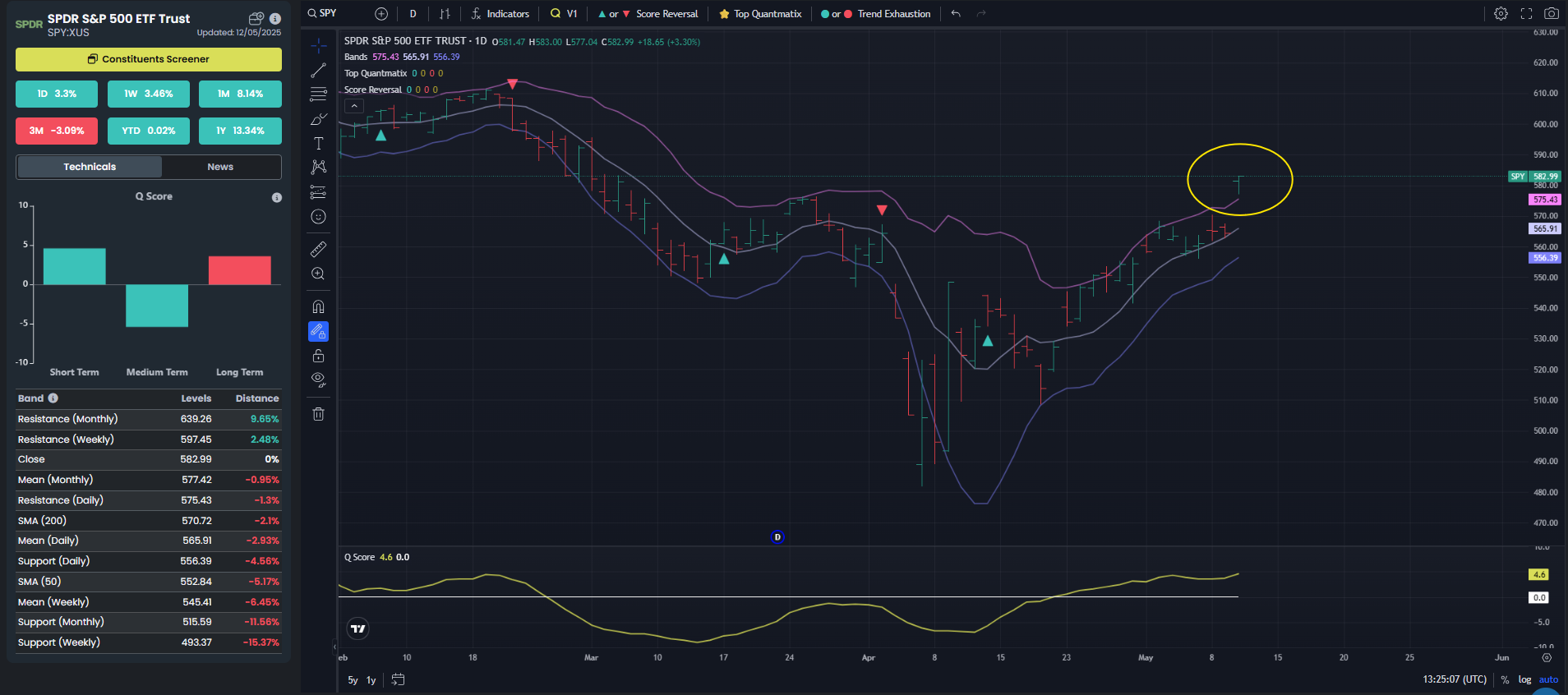 After several weeks of stretched conditions and cautionary signals, the US equity market is showing continuing signs of strength. The S&P 500 Index (SPX) has posted a positive reversal last week, with the Quantmatix scores improving on both the Daily and Weekly time frames — a constructive shift in tone that warrants attention.