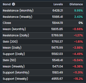 We continue to monitor price action relative to key volatility-adjusted trading bands: